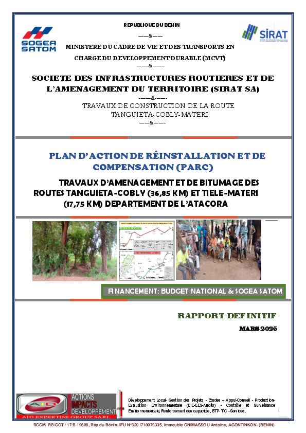 Plan d'Action de Réinstallation et de Compensation (PARC) des travaux d’aménagement et de bituma...