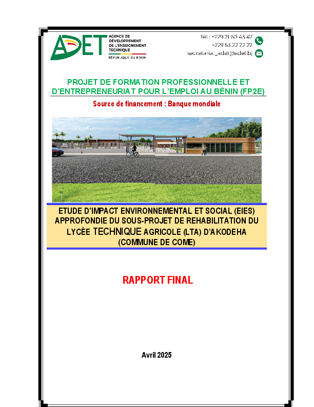 Étude d’Impact Environnemental et Social Approfondie du sous-projet de construction et exploitati...