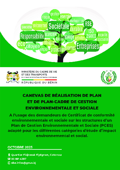Canevas de réalisation de Plan et de Plan-Cadre de Gestion Environnementale et Sociale