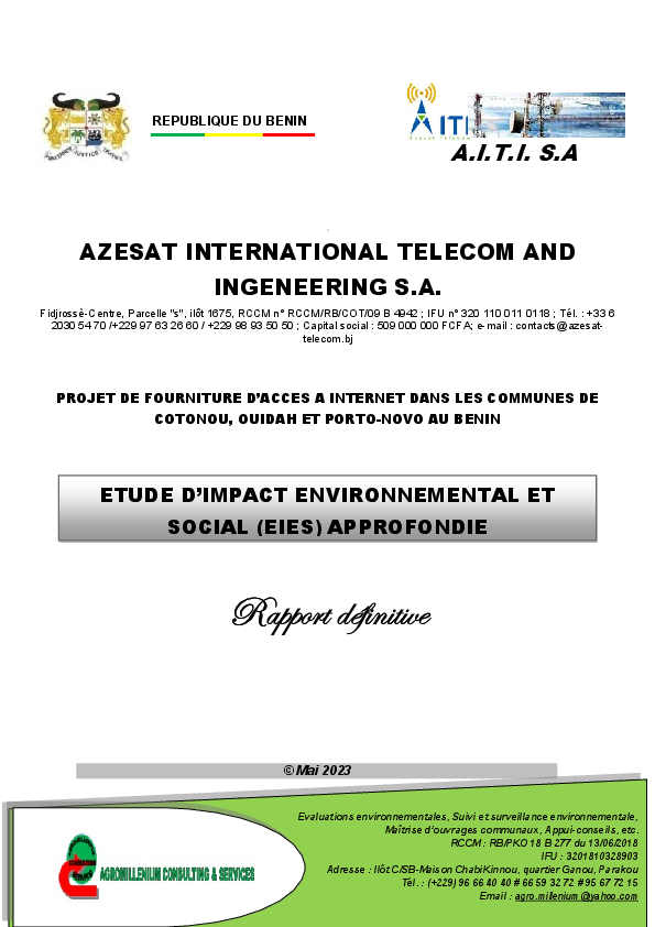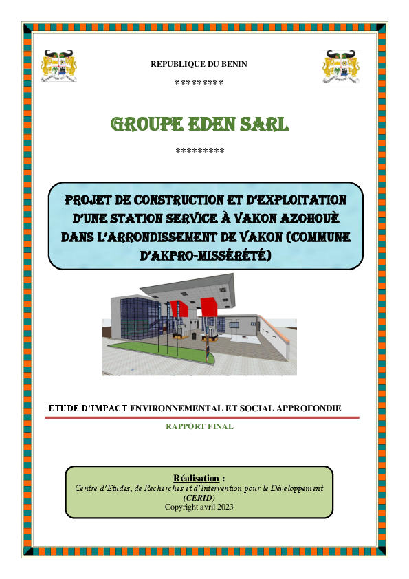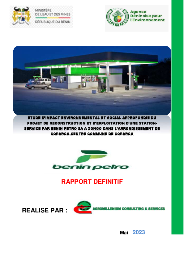 Rapport EIES : Construction et exploitation station service, Vakon Azohouè, Akpro-Missérété