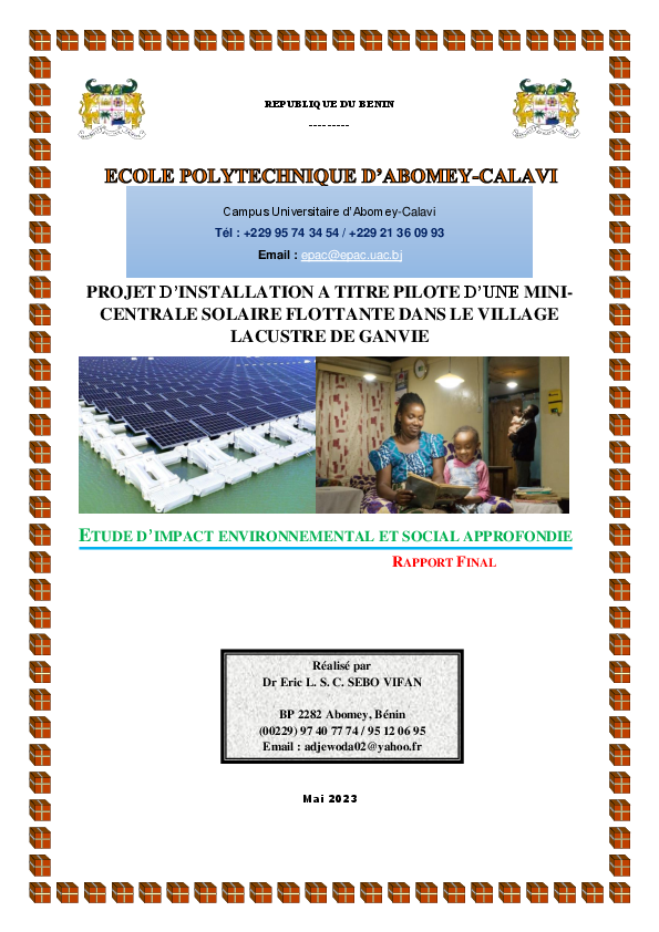 INSTALLATION A TITRE PILOTE D’UNE MINI-CENTRALE SOLAIRE FLOTTANTE DANS LE VILLAGE LACUSTRE DE GANV...