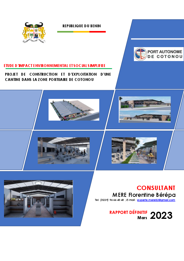 Rapport EIES : Construction et exploitation cantine, Zone portuaire Cotonou.