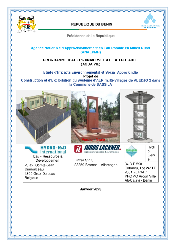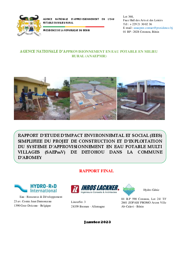 Construction et exploitation du système d'approvisionnement en eau potable multi-villages (SAEPmV) ...