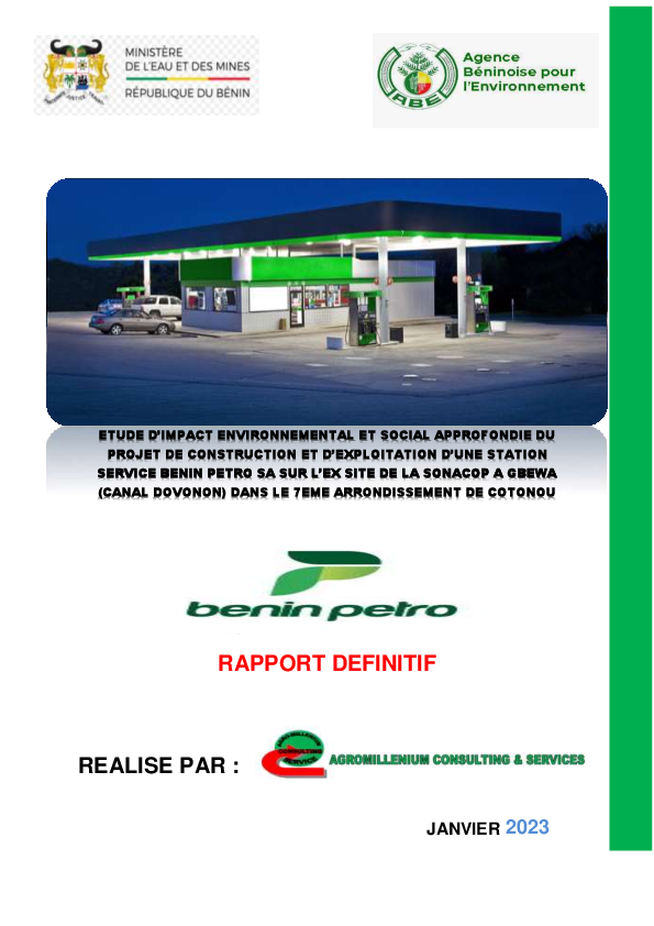 Construction et exploitation station-service Bénin Petro SA sur l'ancien site SONACOP à Gbewa (Can...