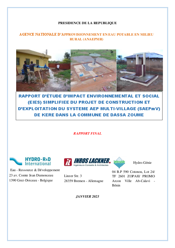 Projet Construction et Exploitation SAEPmV KERE, Commune DASSA ZOUME
