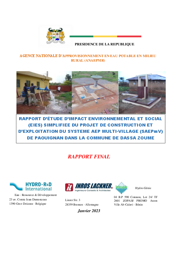 Projet Construction et Exploitation SAEPmV PAOUIGNAN, Commune DASSA ZOUME