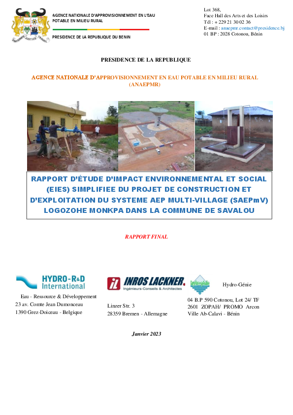 Projet Construction et Exploitation SAEPmV LOGOZOHE MONKPA, Commune SAVALOU.