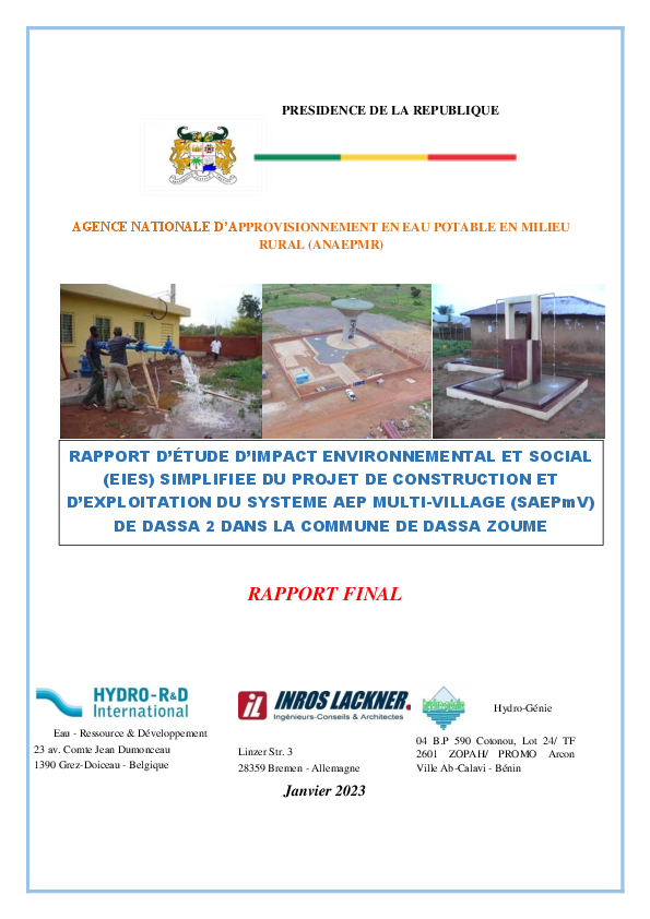 Projet Construction et Exploitation SAEPmV DASSA 2, Commune DASSA ZOUME