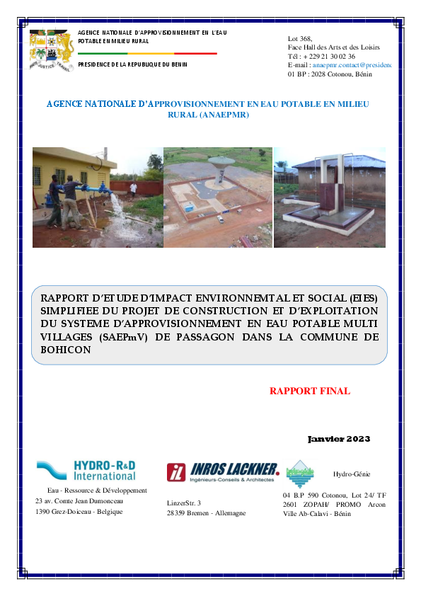 Construction et exploitation du système d'approvisionnement en eau potable multi-villages (SAEPmV) ...