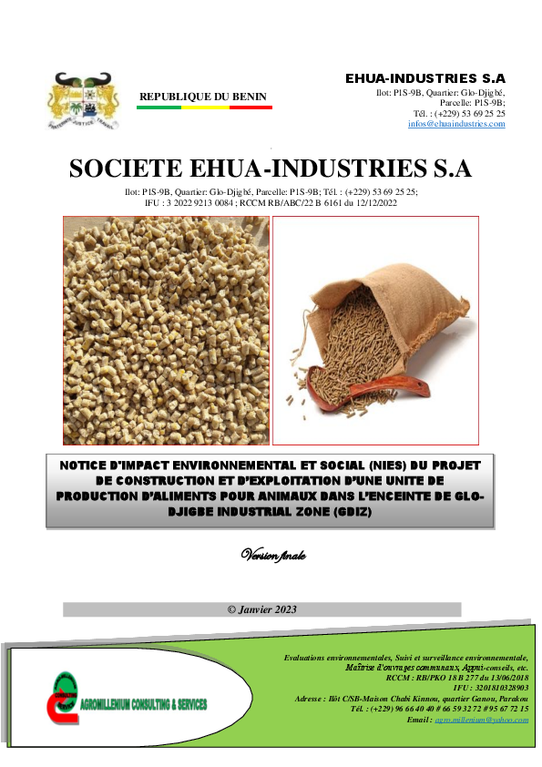 Rapport EIES : Construction et exploitation unité alimentation animale, Glo-Djigbe Industrial Zone ...