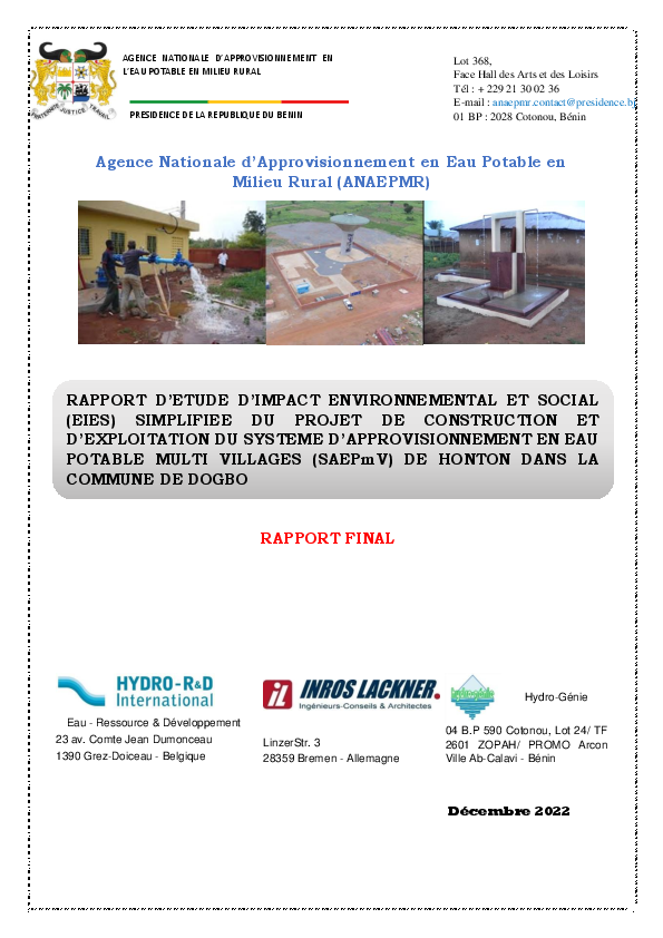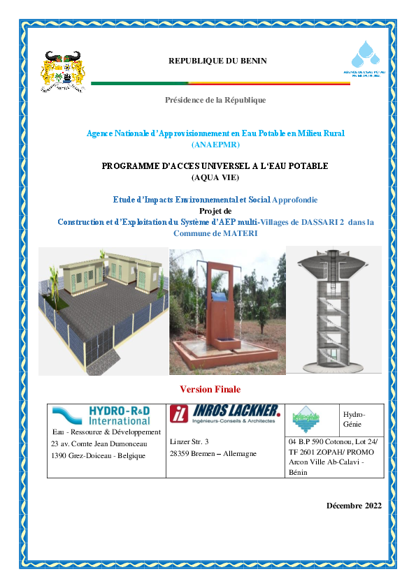 Construction et exploitation du système d'approvisionnement en eau potable multi-villages (SAEPmV) ...