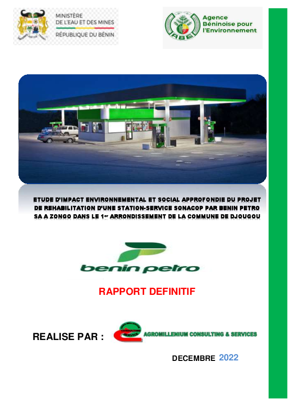 Étude impact environnemental et social approfondie du projet réhabilitation station-service SONACO...