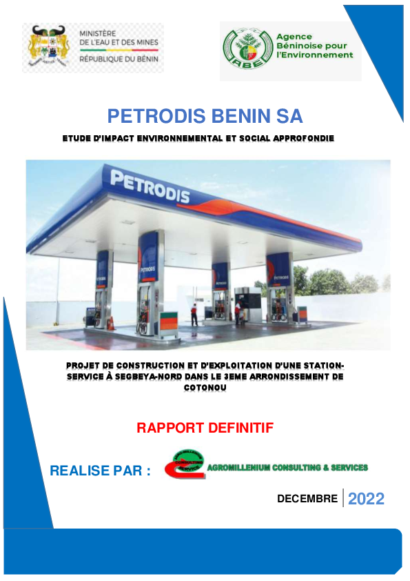Construction et exploitation station-service à Segbeya-Nord, 3ème arrondissement de Cotonou.
