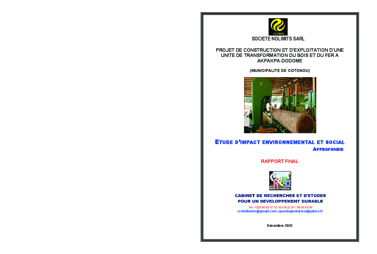 Rapport EIES : Construction et exploitation d'unité de transformation bois et fer à Akpakpa-Dodome...