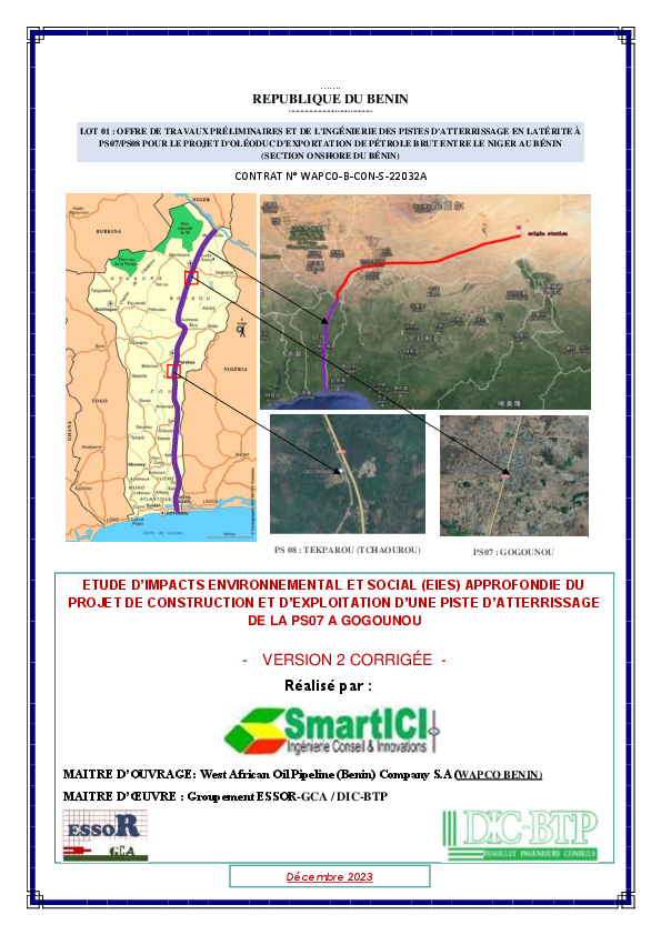 CONSTRUCTION ET D’EXPLOITATION D’UNE PISTE D’ATTERRISSAGE DE LA PS07 A GOGOUNOU