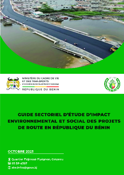 Le Guide sectoriel Projet de route complète de manière plus précise, pour les projets de route, les directives contenues dans le Guide Général de réalisation d’une étude d’impact environnemental et social. Toutefois, il ne le remplace pas, et l’étude d’impact environnemental et social pour tout projet de route doit également être conforme aux directives du Guide Général. Le Guide sectoriel précise les éléments particuliers qui peuvent contribuer à la préparation de Termes de Références appropriés pour le secteur, la