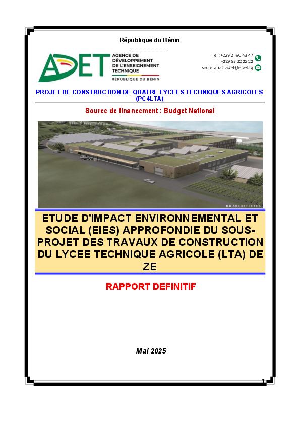 Catégorie : Rapports d'Etude et d'Impact Environnemental et Social