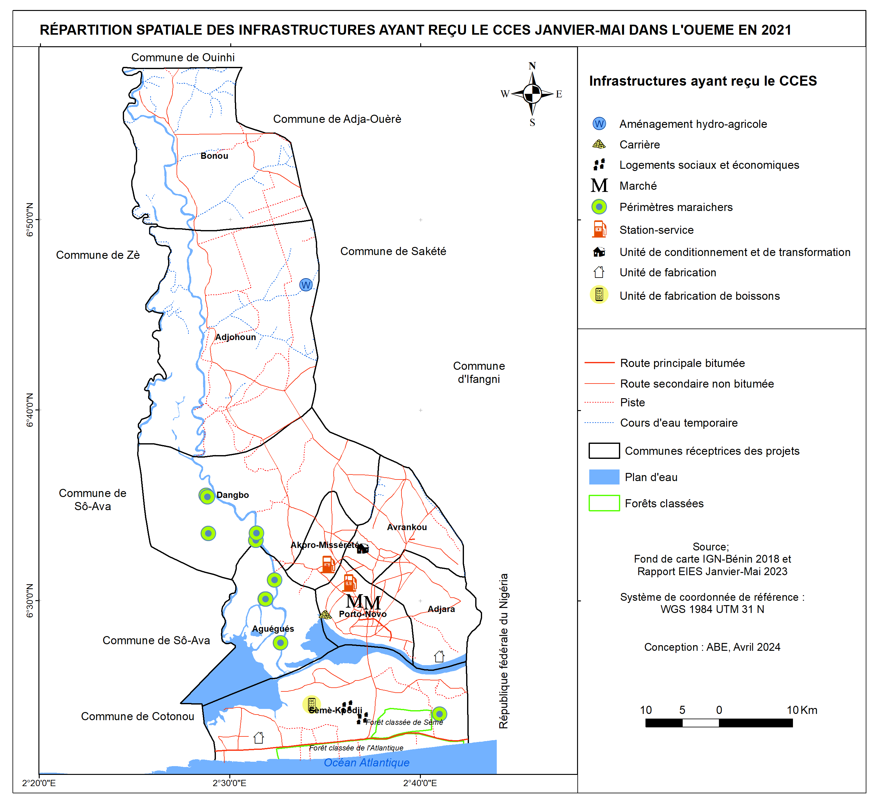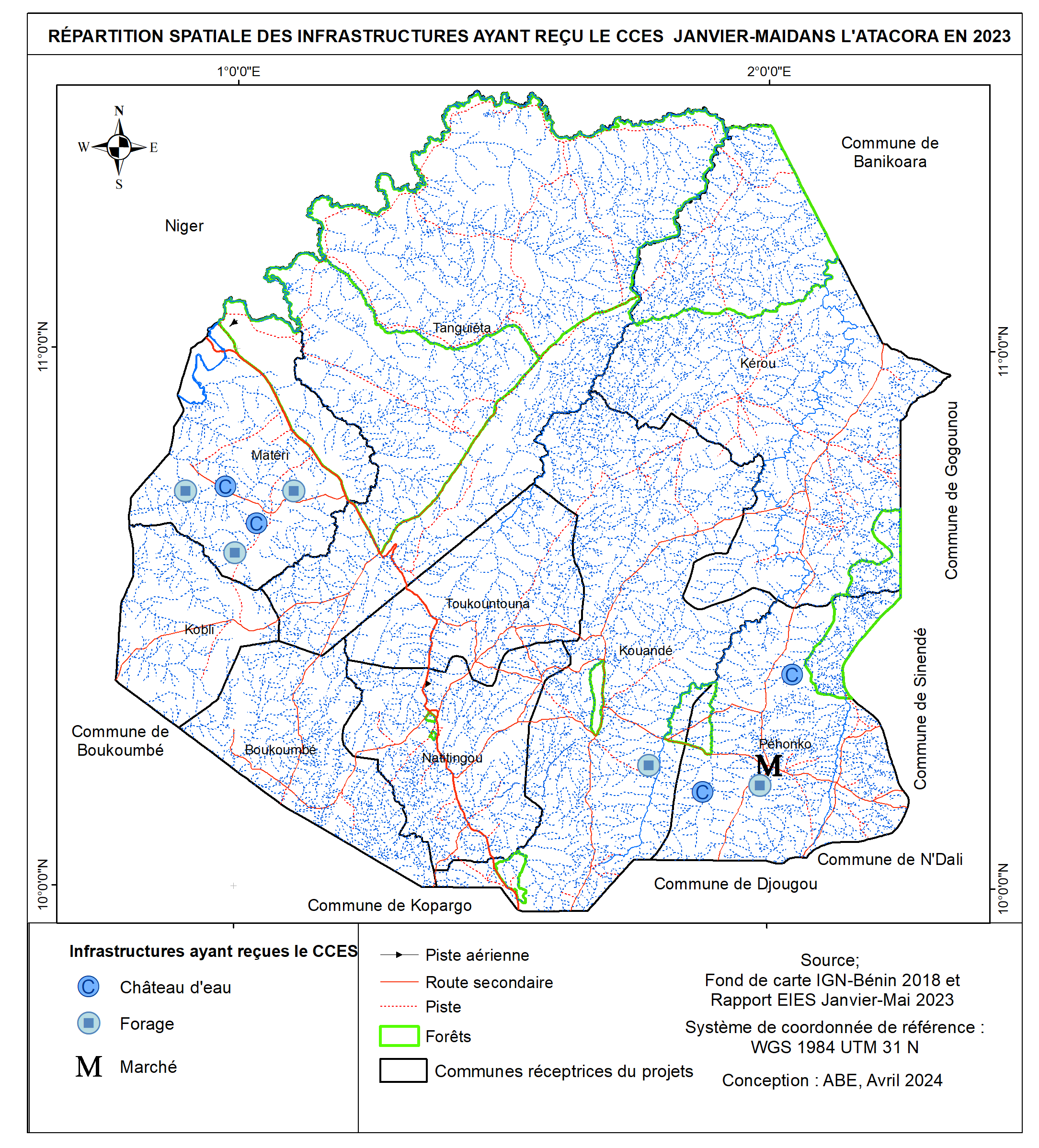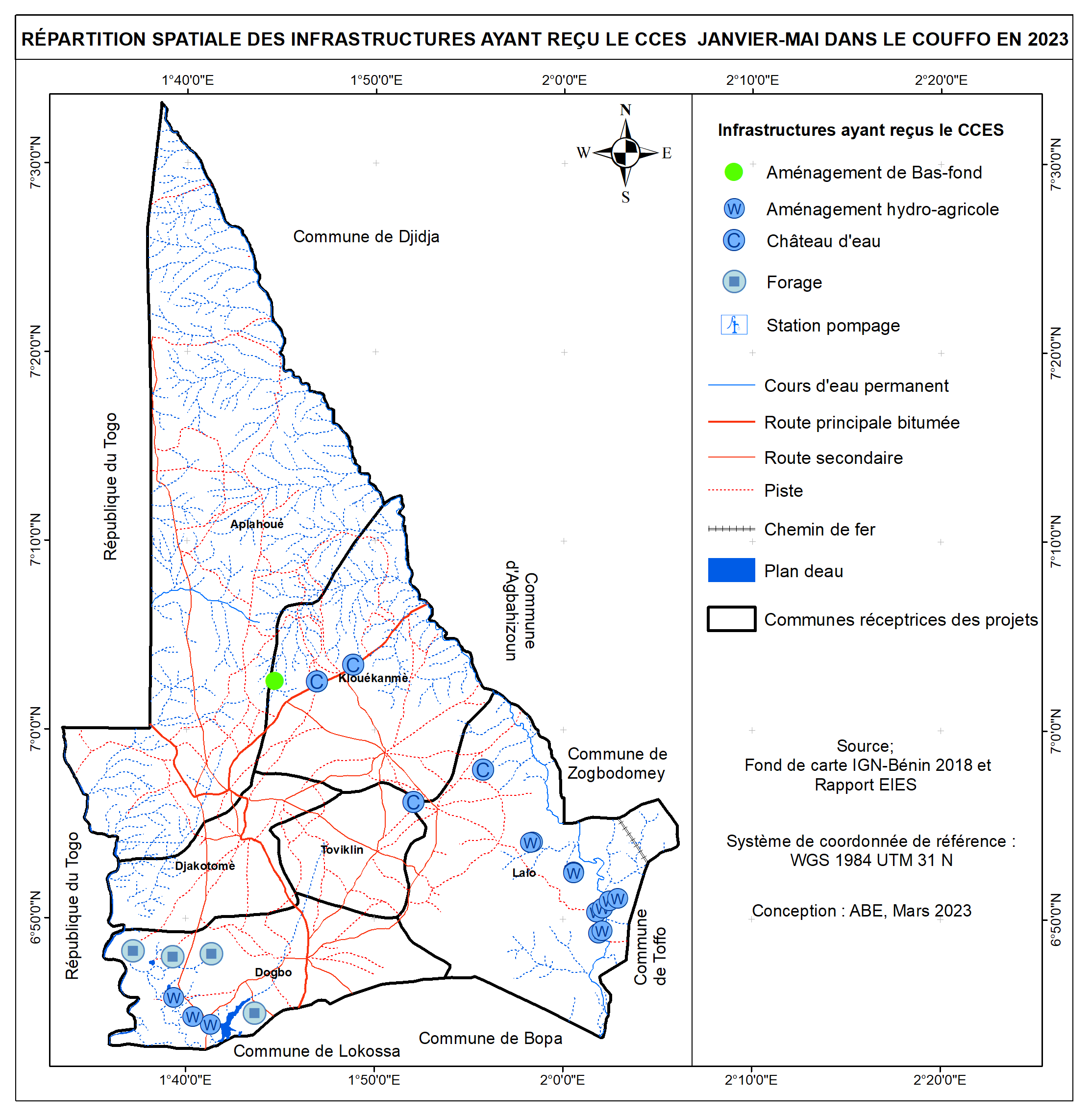 Répartition spatiale des infrastructures ayant obtenues de CCES en 2023