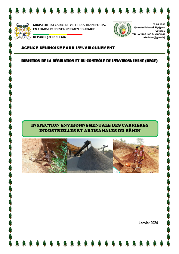 INSPECTION ENVIRONNEMENTALE DES CARRIÈRES INDUSTRIELLES ET ARTISANALES DU BÉNIN