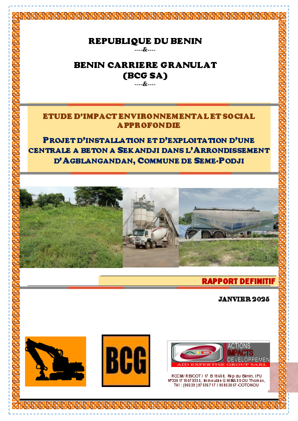 Projet d’installation et d’exploitation d’une centrale à béton à Sèkandji dans l’arrondi...