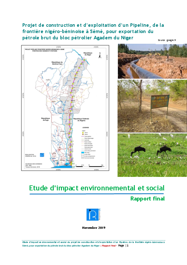 Construction et d’exploitation d’un Pipeline, de la frontière nigéro-béninoise à Sèmè, pou...