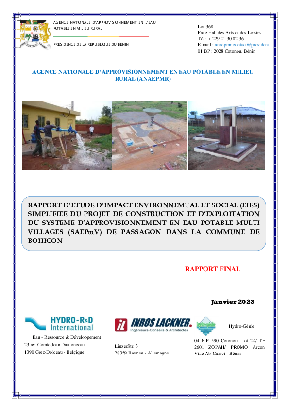 Construction et exploitation du système d'approvisionnement en eau potable multi-villages (SAEPmV) de Passagon, Commune de Bohicon