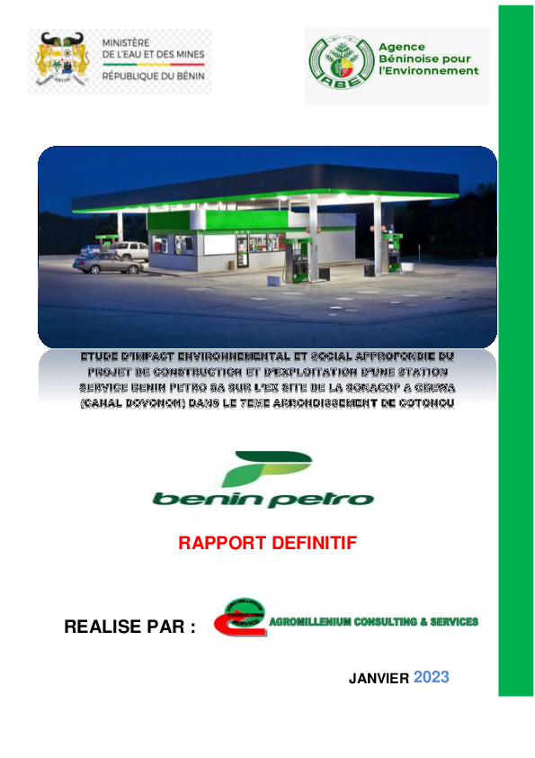 selon le canevas du guide d’élaboration des études d’impacts de l’Agence Béninoise pour