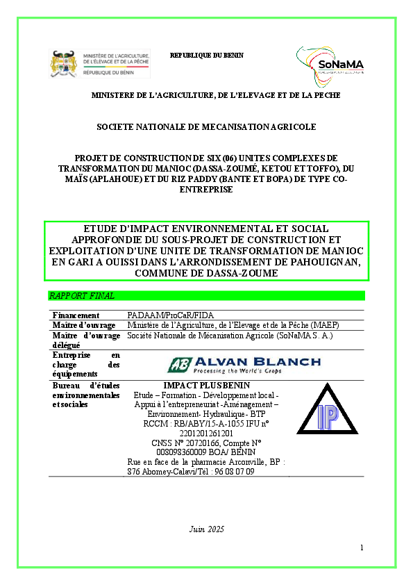 Catégorie : Rapports d'Etude et d'Impact Environnemental et Social