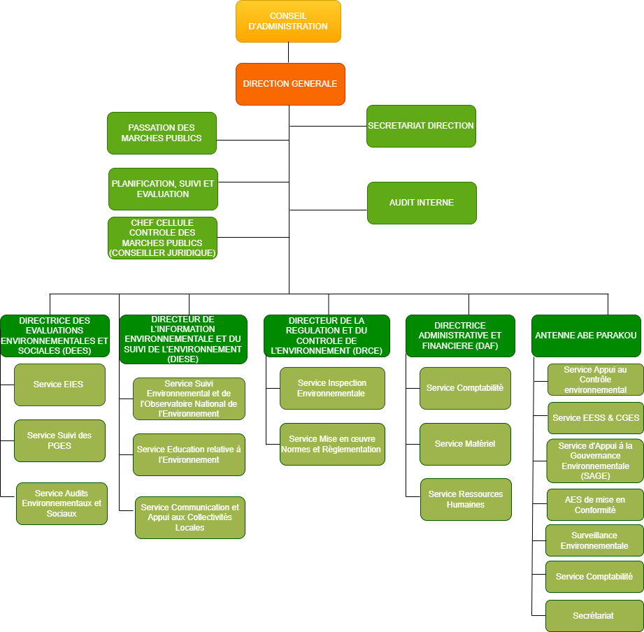 L’Agence Béninoise pour l’Environnement est une entité juridique indépendante avec une gestion autonome. Elle est placée sous la tutelle du Ministère du Cadre de Vie et des Transports chargé du développement durable.